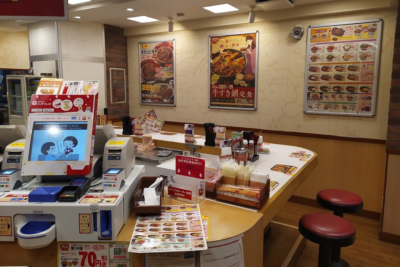 Think of Sukiya as the Japanese Denny’s. Actual Denny’s is also in Japan, but it’s considered special occasion food, featuring Amerikan classics like Rice Casserole With Hamburger Steak and Curry Sauce. Sukiya, however, doesn’t make any special effort to impress. They know anyone stumbling through their door at three in the morning is desperate. Like Brad, still jet lagged, sitting down at a linoleum table and pointing haphazardly at the menu.